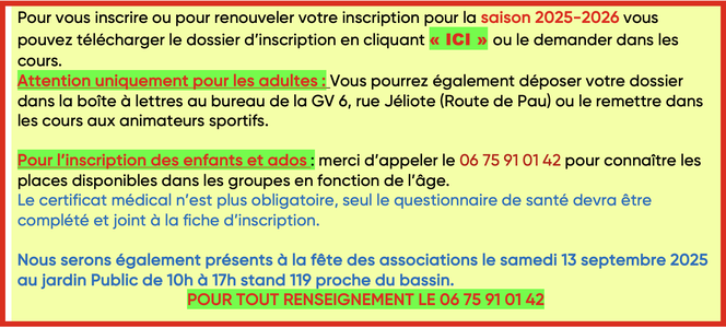 " ON PEUT S'INSCRIRE AU CLUB GV A TOUT MOMENT DE L'ANNEE "